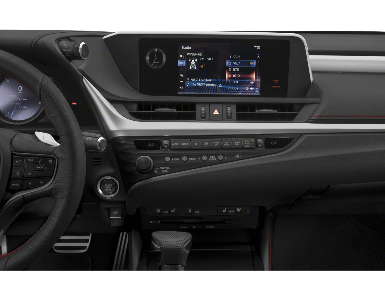 - Radio: Lexus Premium Sound System w/10 Speakers -inc: 7-inch Thin Film Transistor (TFT) LCD instrument panel display, aux and 3 USB (1 front, 2 rear) audio input plugs, Bluetooth® streaming audio, hands free phone and automatic phonebook download capabilities, CD player, HD Radio w/iTunes tagging (subscription free traffic and weather updates), integrated SiriusXM satellite radio receiver (complimentary 90-day trial subscription), remote touch interface controller w/back button, Lexus multimedia system w/8-inch color display and Scout GPS Link w/MapStream and TurnStream (complimentary for up to the first 3 years of ownership), Lexus Enform App Suite 2.0 Amazon Alexa compatible, Lexus Enform Wi-Fi (complimentary 4GB one-year trial included), Lexus Enform Remote app and Amazon Alexa compatibility (complimentary during first year of ownership), home screen divided into three customizable sections (HVAC, audio, traffic), voice command, Siri Eyes Free and Google voice control