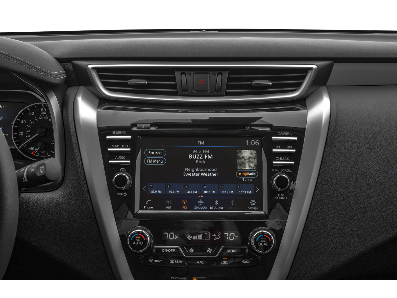 - Radio: AM/FM/CD/MP3/WMA Audio System -inc: 6 speakers, auxiliary audio input jack, SiriusXM satellite radio, NissanConnect featuring Apple CarPlay and Android Auto, 8" color display w/multi-touch control, 2 front illuminated USB connection ports (1 type-A, 1 type-C) for iPod interface and other compatible devices, Bluetooth® hands-free phone system, streaming audio via Bluetooth®, hands-free text-messaging assistant, Siri Eyes Free and 2 rear illuminated USB charge ports (1 type-A, 1 type-C)