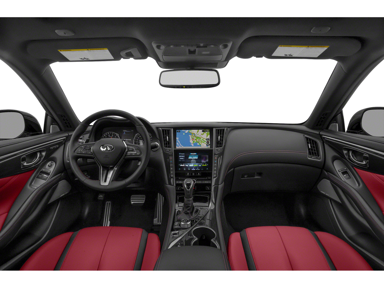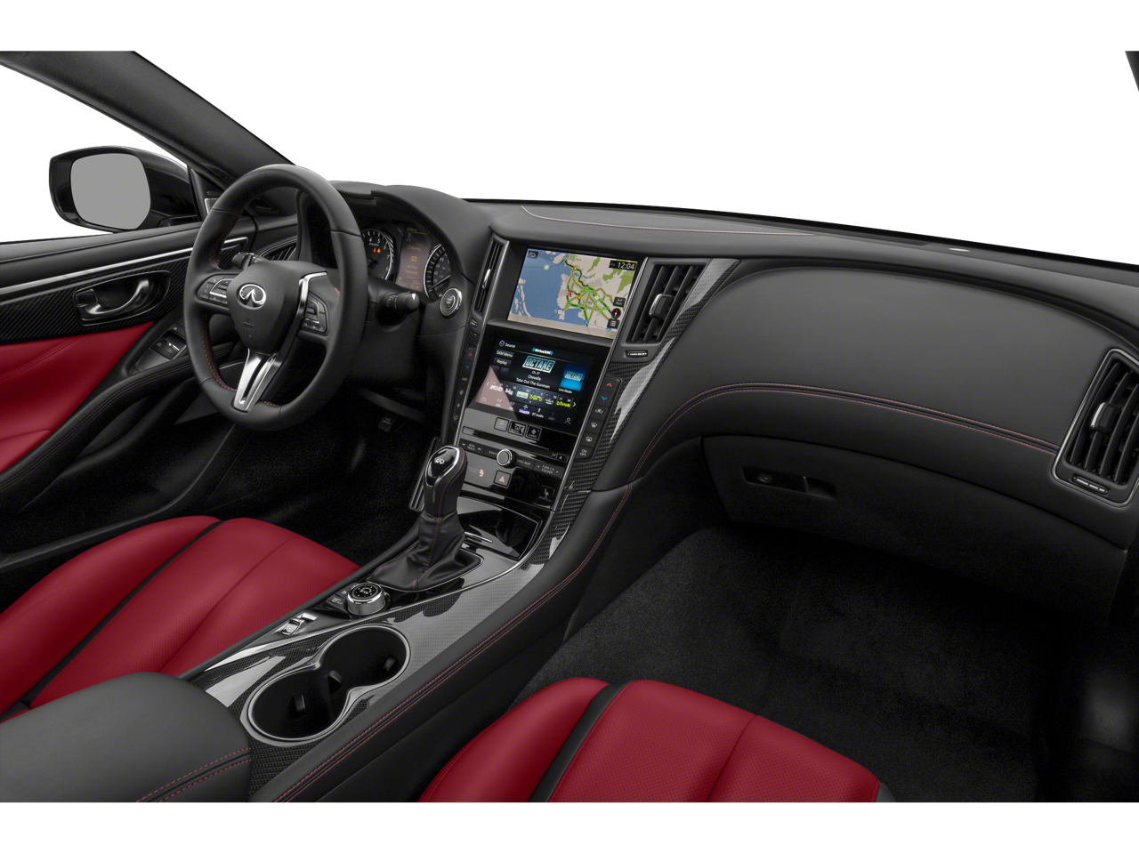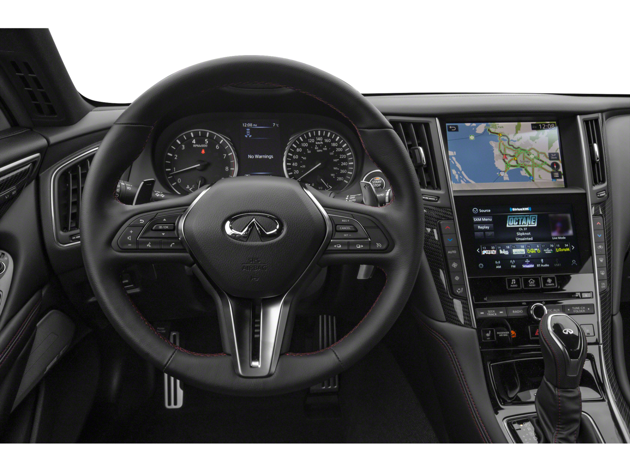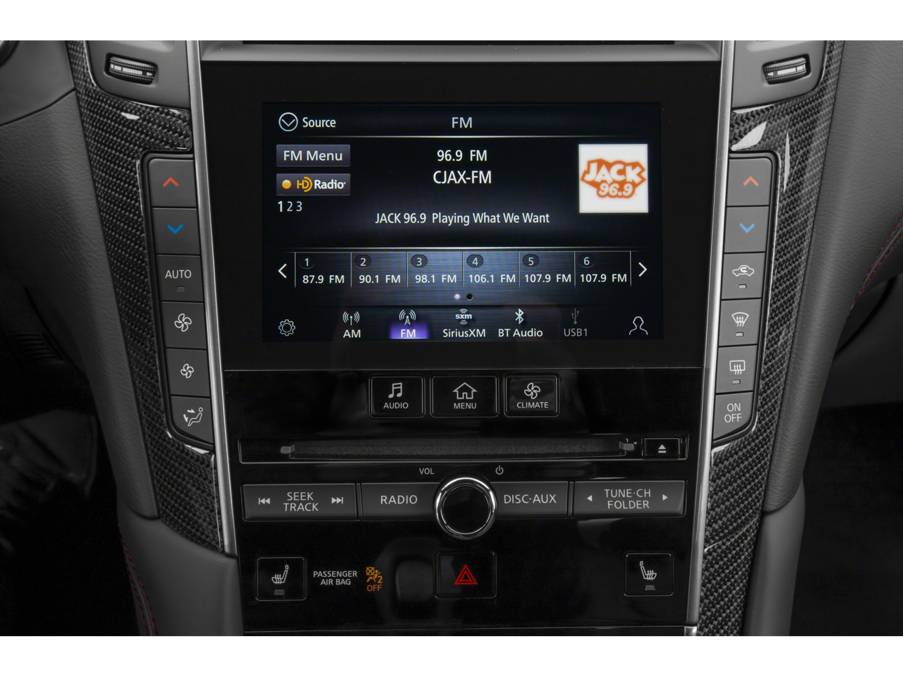 - Radio: INFINITI InTouch w/AM/FM/HD/CD/Navigation -inc: Bose performance series audio 13-speaker stereo, wireless Apple CarPlay, Siri Eyes Free, Android Auto including Google Voice, INFINITI dual HD display system touchscreens, 8-inch upper and 7-inch lower color vehicle-information displays, INFINITI InTuition customizable environment for audio, climate, feature displays and IT functions stored in each INFINITI Intelligent Key, INFINITI voice recognition for audio and vehicle vehicle information systems, speed-sensitive volume control, steering wheel-mounted audio controls, Streaming audio via Bluetooth®, Bluetooth® hands-free phone system w/hands-free text messaging assistant, SiriusXM radio w/advanced audio features and a 3-month complimentary trial, in-glass FM diversity antenna, 2 illuminated USB connection ports (1 type A and 1 type C), 2 12-volt accessory power outlets and auxiliary audio input, navigation w/lane guidance, 3D building graphics, 5 years complimentary trial access to premium traffic and MapCare, voice recognition for navigation functions, including one-shot voice destination entry, SiriusXM Traffic w/3 month complimentary trial access to real-time traffic information, and SiriusXM Travel Link w/3 month complimentary trial access to weather, fuel prices, stock prices, sports scores, movie listings and parking