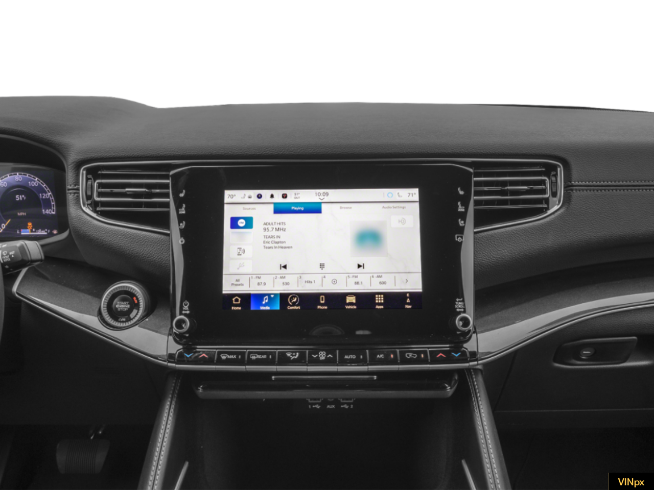 - Radio w/Seek-Scan, Clock, Speed Compensated Volume Control, Aux Audio Input Jack, Steering Wheel Controls, Voice Activation, Radio Data System and External Memory Control