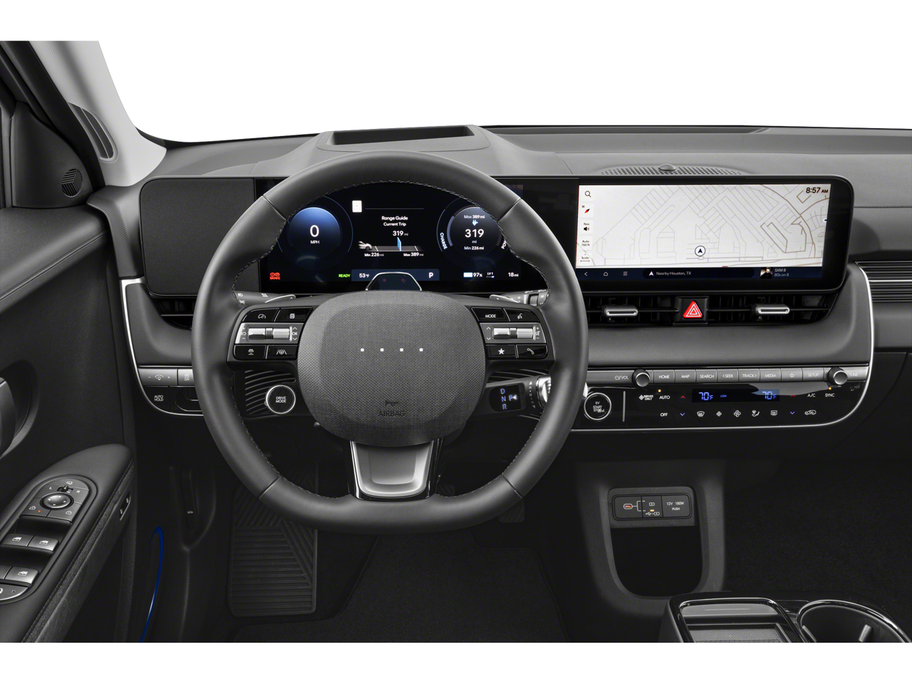 - Radio: AM/FM/SiriusXM/HD Audio System -inc: 12.3" color LCD gauge cluster w/EV technology display, navigation infotainment system, wireless Android Auto and Apple CarPlay integration, Blue Link connected car system, vehicle Wi-Fi hotspot, Bluetooth® w/phonebook transfer; Hyundai Pay, dynamic voice recognition, USB input, Over-the-Air (OTA) Controller ECU, map/multimedia software update capability and Bose premium audio system w/8 speakers including subwoofer and external amp